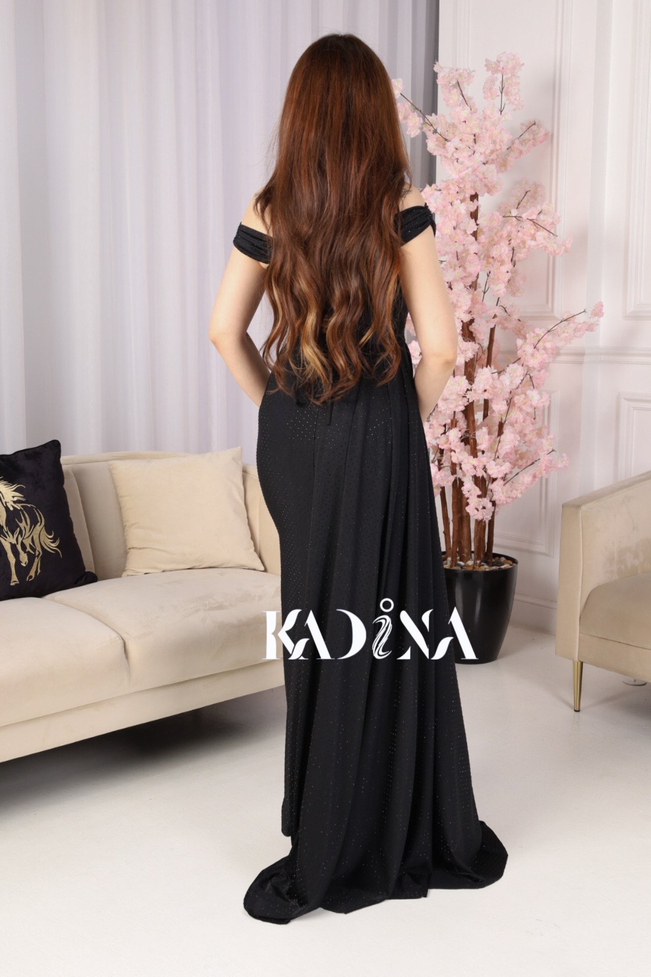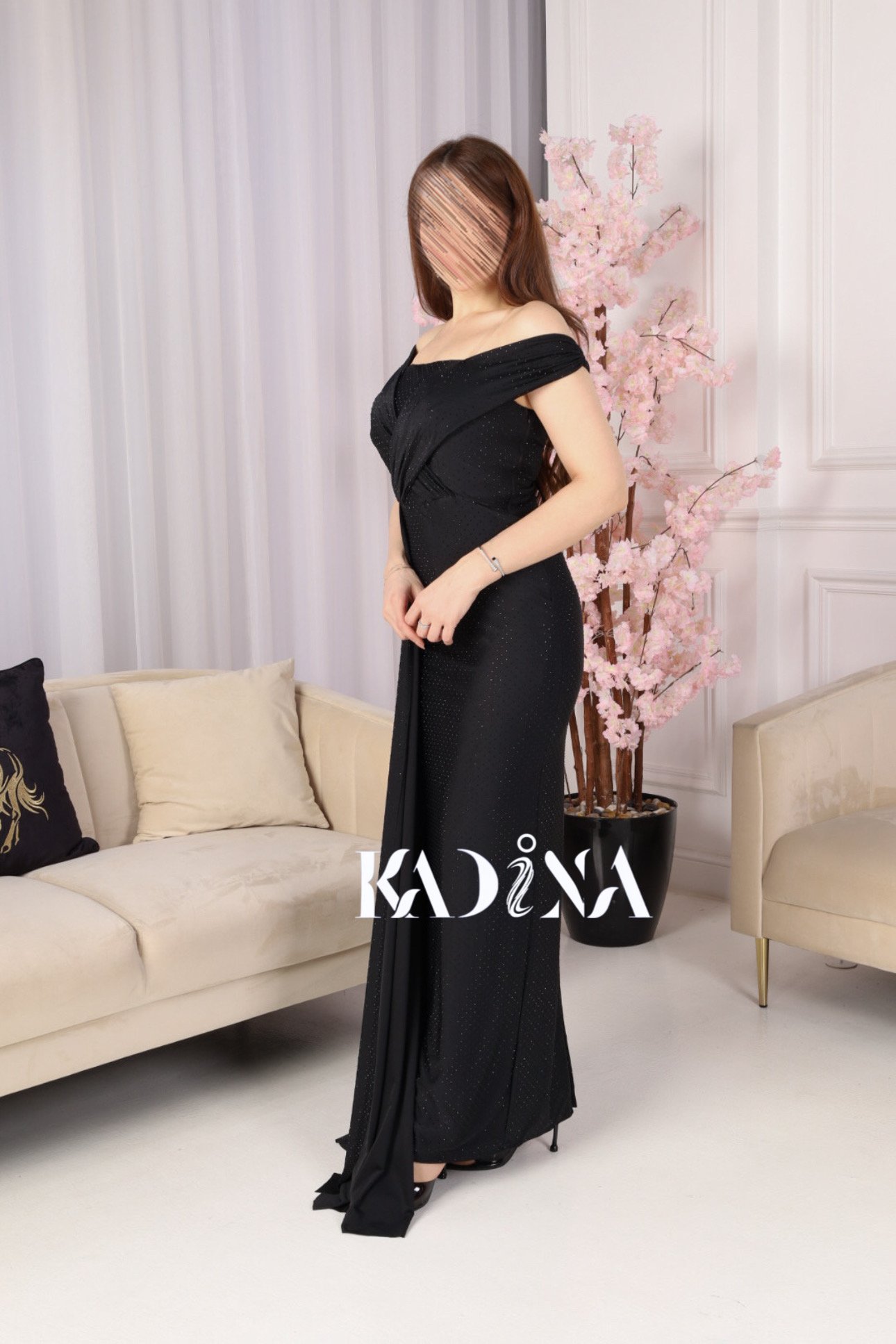تصميم ناعم وبسيط يجمع بين الجاذبية والرقي، مثالي للسهرات الرسمية أو المناسبات الراقية، ويبرز القوام بشكل أنثوي دون مبالغة.