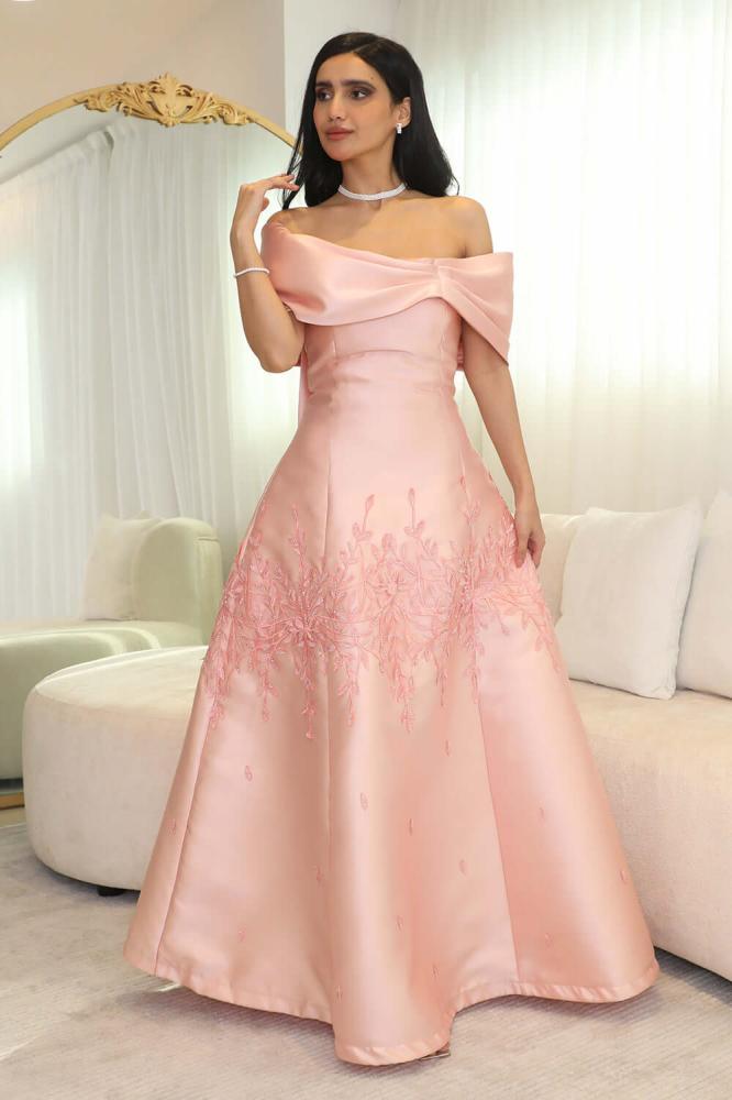فستان بينك ساحر يعكس أناقة لافتة، مزين بتفاصيلة الراقية وبقصة الصدر التي تضيف لمسة لامعة ومتألقة. إنه خيار راقٍ وجميل يضفي سحرًا فريدًا على إطلالتك، مثالي للظهور بأناقة في المناسبات المميزة